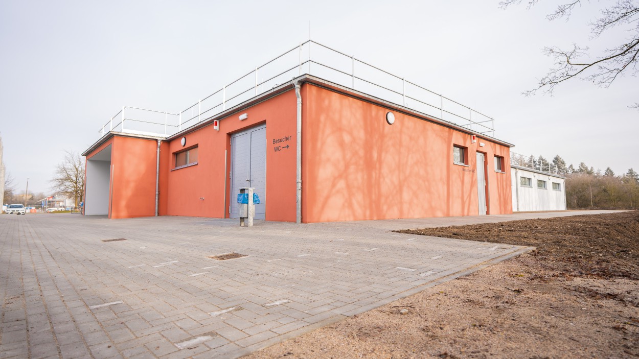 Der Bauherr plant den Neubau eines Funktionsgebäudes für Sportler (Schul- und Vereinssport) auf dem Gelände des Sportparks Lambrechtsgrund. Hier sollen Umkleide-, Sanitär- und Duschräume sowie Funktionsräume für Trainer und Schiedsrichter geschaffen werden. Geschäftsstellen, Besprechungs- und Nebenräume wie Lager, Putzmittel-, Trocken- und Technikraum etc. sind ebenfalls geplant.