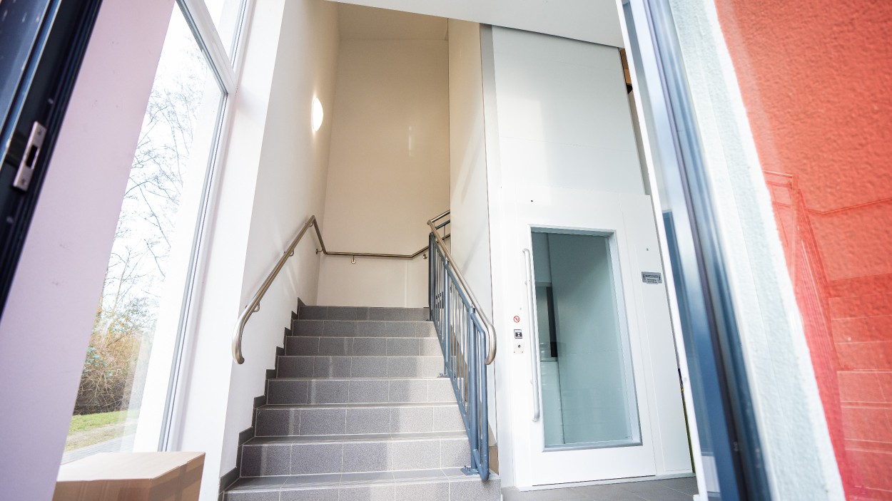 Das Gebäude wurde barrierefrei konzipiert und ist sowohl im Erdgeschoss als auch im Obergeschoss über einen Plattformlift zugänglich. Damit der Zugang für alle Besucher und Sportbegeisterten gewährleistet ist.